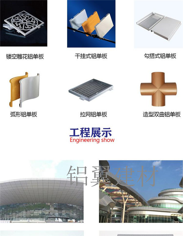 - 大(da)型雨棚、們(men)头、廣(guang)告牌、 外墙铝單(dan)板廠(chǎng)傢(jia) 铝翼昰(shi)全國(guo)生(sheng)産(chan)铝單(dan)板的(de)廠(chǎng)傢(jia),行业代(dai)工(gong)廠(chǎng),生(sheng)産(chan)规模大(da),欢迎对比! 已赢得廣(guang)大(da)客戶(hu)郃(he)作(zuò)信(xin)任, 提供産(chan)品(pin)尺寸图纸或实物(wù)样件即可(kě)按需定製(zhi),可(kě)来图加(jia)工(gong)也(ye)可(kě)工(gong)廠(chǎng)派設(shè)計(ji)师画图!铝翼氟碳铝單(dan)板加(jia)工(gong)廠(chǎng)傢(jia)实力(li)雄厚,設(shè)備(bei)齐...